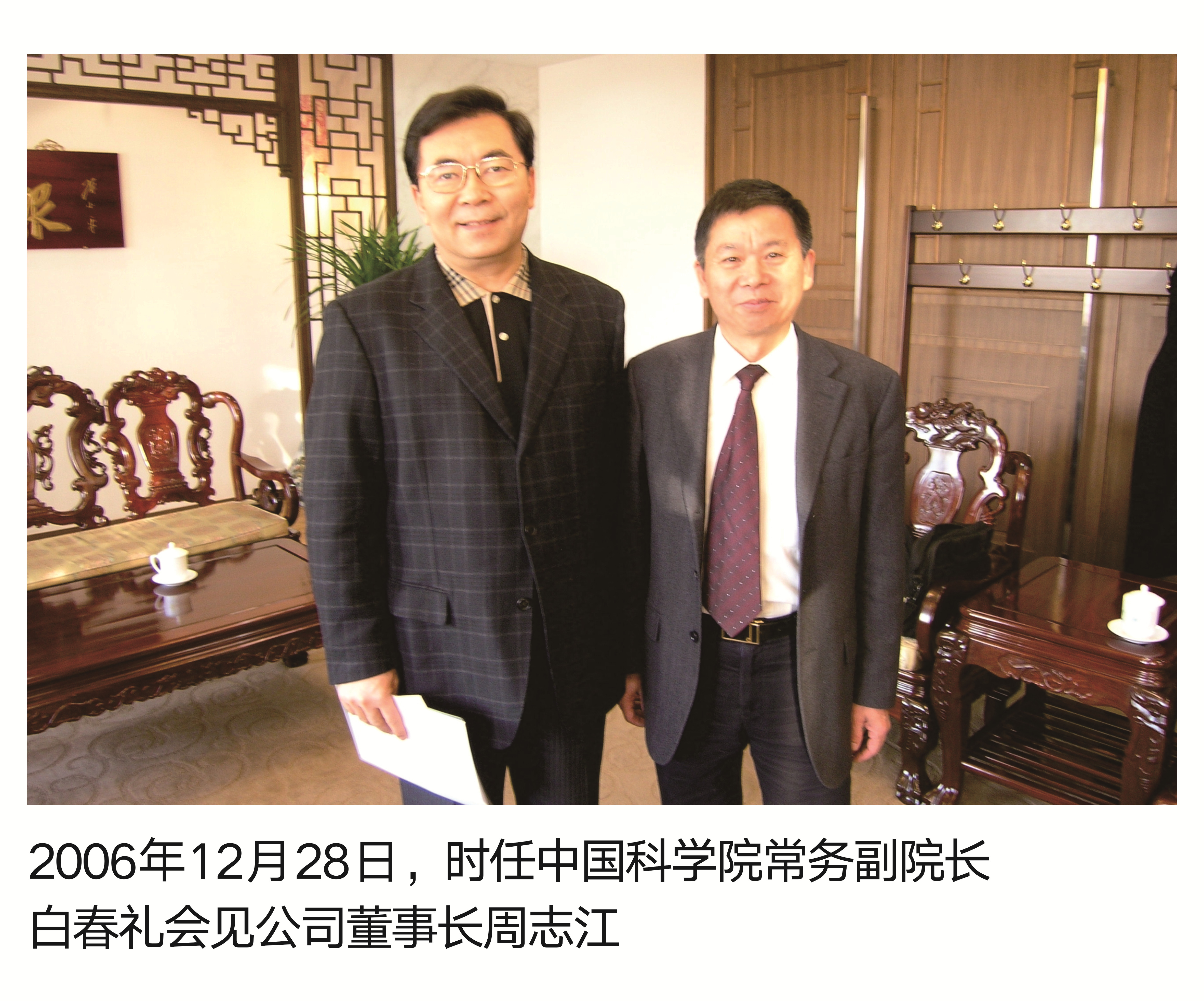 2006年12月28日,時任中國科學院常務副院長白春禮回見公司董事長周志江