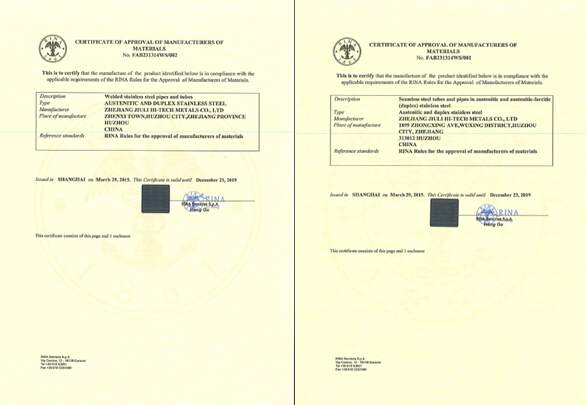 熱烈祝賀久立通過第7個船級社認證-意大利(RINA)認證